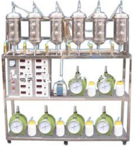 并聯(lián)不銹鋼反應器主體、風機、氣體流量計、濕式氣體流量計、塑料瓶吸收裝置、球閥、溫度顯示表、儀表控制箱、漏電保護開關、不銹鋼臺架等組成。
